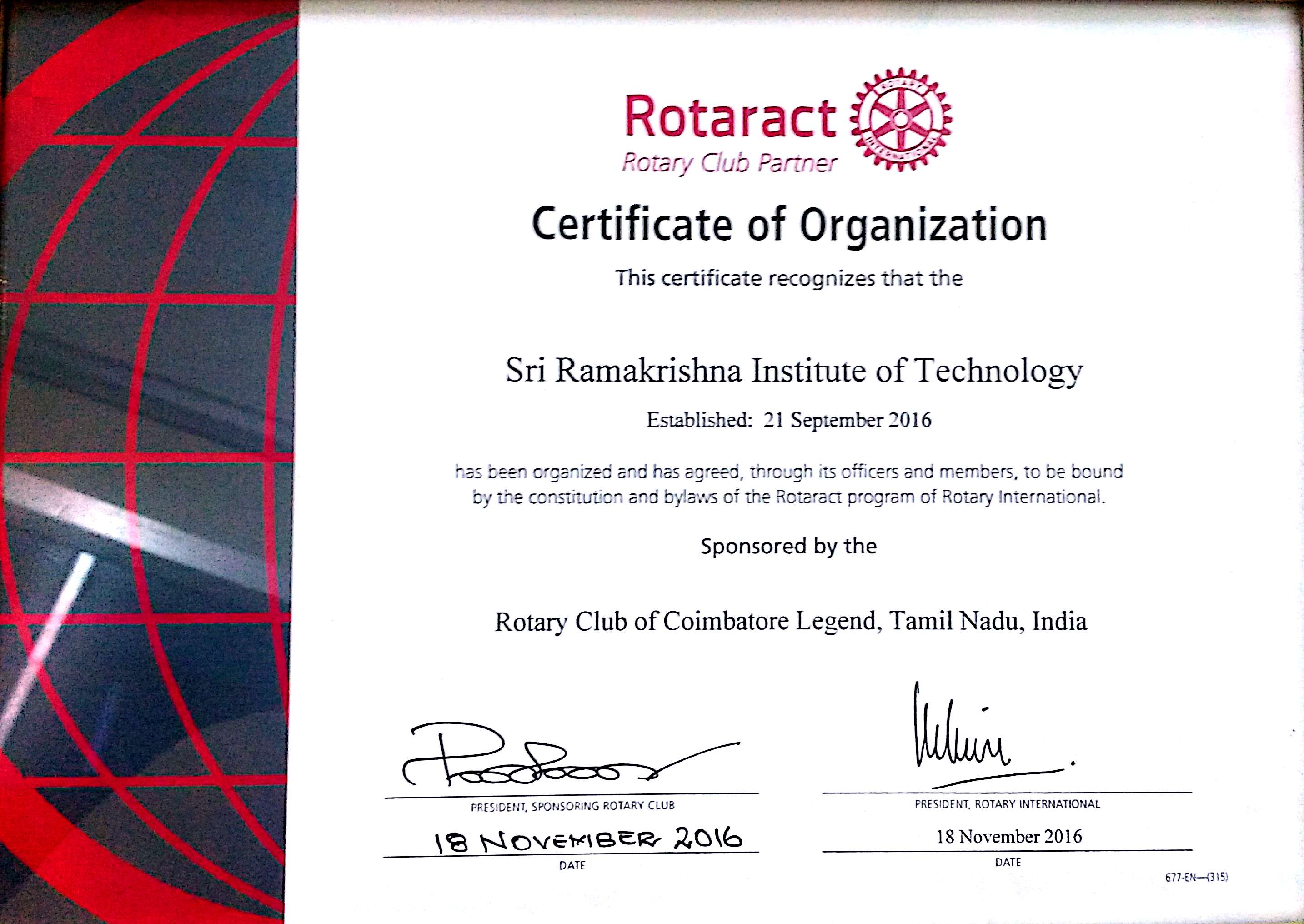 The Installation Ceremony of Rotaract Club of Sri Ramakrishna Institute of Technology held on 2.8.2017 at SRIT. Appreciation from Chief Guest Rtn.Godwin Maria, Assitant governer, RI.D-3201. Chief Guest of Honour Dr.R.N.Uma, DRR.PP.Ajay Chandran and members from other clubs.
